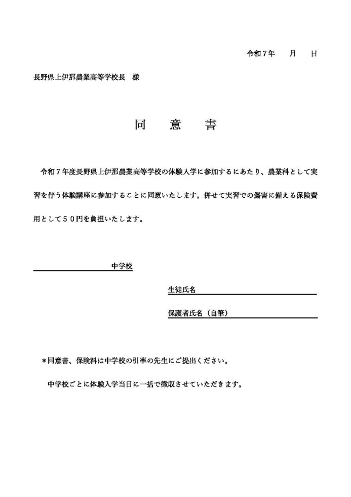 令和7年度体験入学同意書
