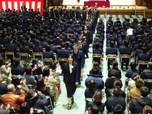 穏やかな晴天のもと、卒業証書授与式が行われ、156名の卒業生が本校を巣立ちました。