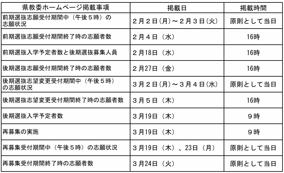 ※ 前期選抜・後期選抜の入学予定者の受検番号のホームページ掲載はありません。校内掲示のみです。