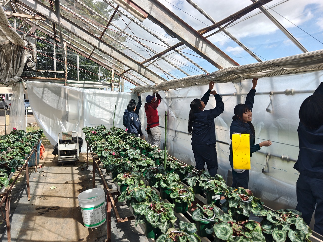 このあと、温室のビニール張り替えを行ないました。もう、以前のビニールが劣化しておりやっと新しいものを購入できました。