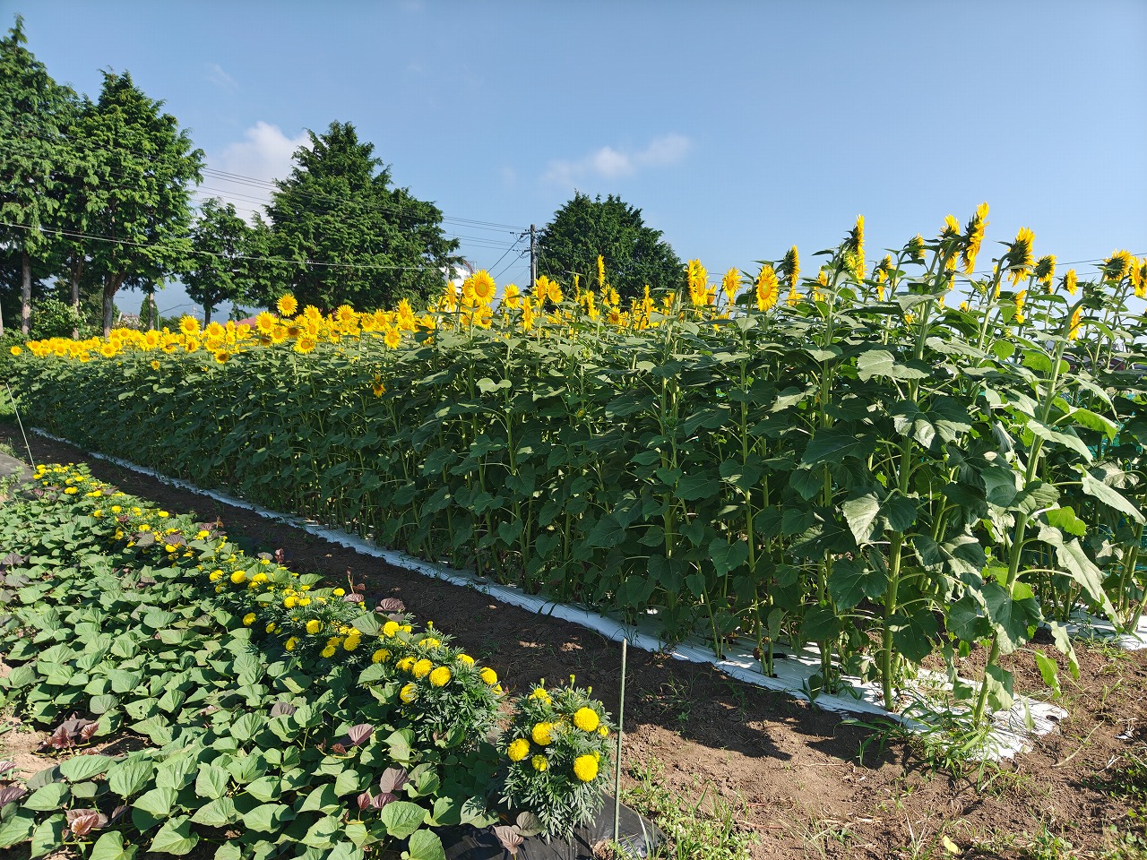 今年の夏はかなり暑いですが外ではひまわり(搾油用)とサツマイモとマリーゴールド(ネコブセンチュウ対策)が元気に育っています。