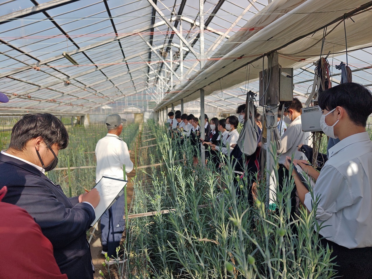 学校で自分たちが栽培管理しているものと大きさが異なり、生徒はびっくりしていました。近年温暖化で生産管理が難しくなっているとのことですが、良い花を生産するために工夫したりしていることがわかりました。