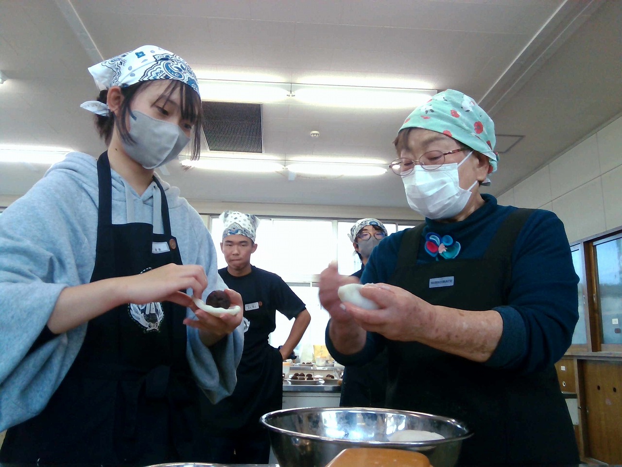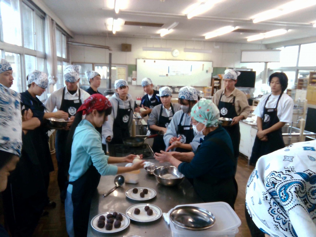 2年果樹・野菜コース、3年アグリコース 食文化 上伊那の郷土料理 恵比寿講にお供えする米粉のおやき 講習