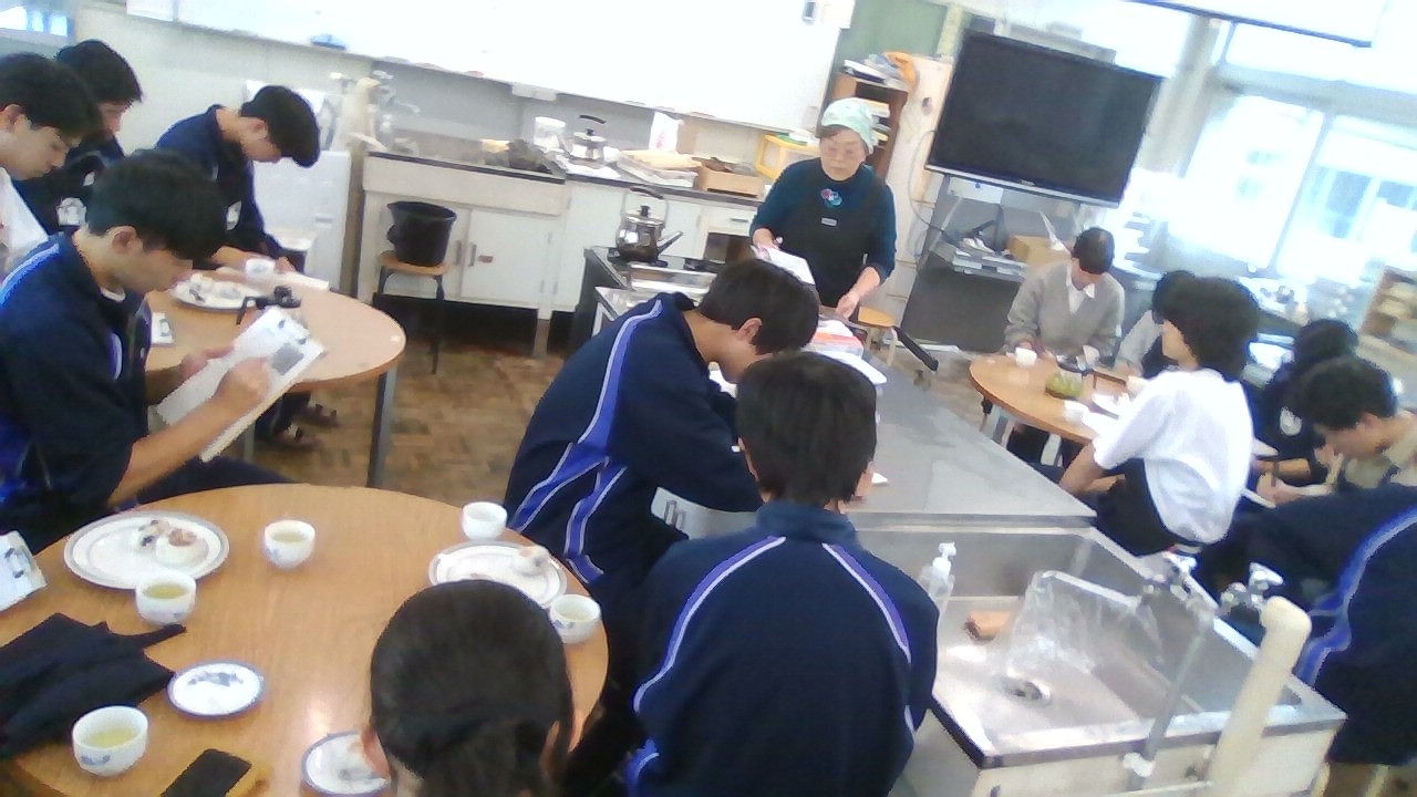 今年も、郷土料理伝承家で志和の会たんぽぽカフェ代表の酒井さつき先生をお迎えし、上伊那の郷土料理を教えていただきました。 今年はインフルエンザによる学級閉鎖などで1031日、1114日、122日と最後の講座は恵比寿講を過ぎてからの実施になりました。上伊那は米どころなので、上伊那のおやきは、小麦粉で作るのではなく米粉で作った小豆あんのおやきを作るとか、恵比寿講でお供えする習わしがあるとか、昔の保存食などについて学びました。また、おたぐりを知っている生徒は案外少なく、おたぐりを煮て持ってきていただき、みんなでいただきました。